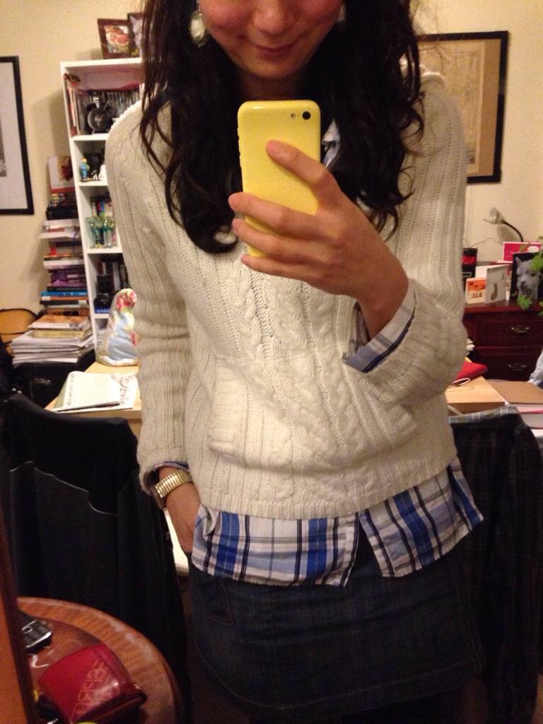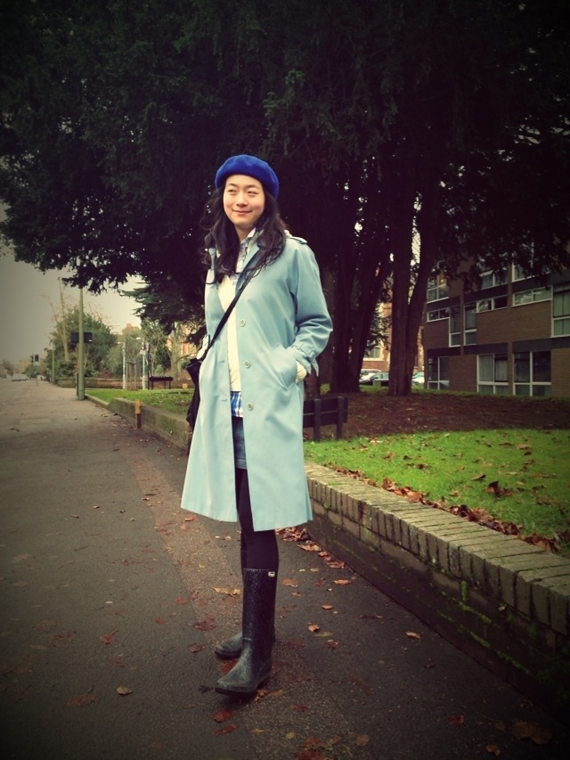 大家贊過的這件Trench coat,來自愛丁堡bruntsfield一家慈善店,99便士,是最神奇的發現之一⋯ 製於60年代,材質與細節都精良。配米/藍色格裙(慈善商店),紫色毛衣裙(慈善商店),藍格男士襯衣(Zara)+白色毛衣(慈善商店)。 愛丁堡的二手及慈善店在重視舊貨的英國都格外出色。這裡有詳盡攻略,暫不贅述,下回再解– http://www.oranges-and-apples.com/2011/05/guide-to-edinburgh-vintage-and-charity.html